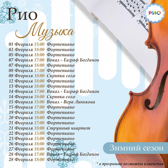 14 февраля — 17:00 Вокал (Евграф Богданов), 18:00 Скрипка соло