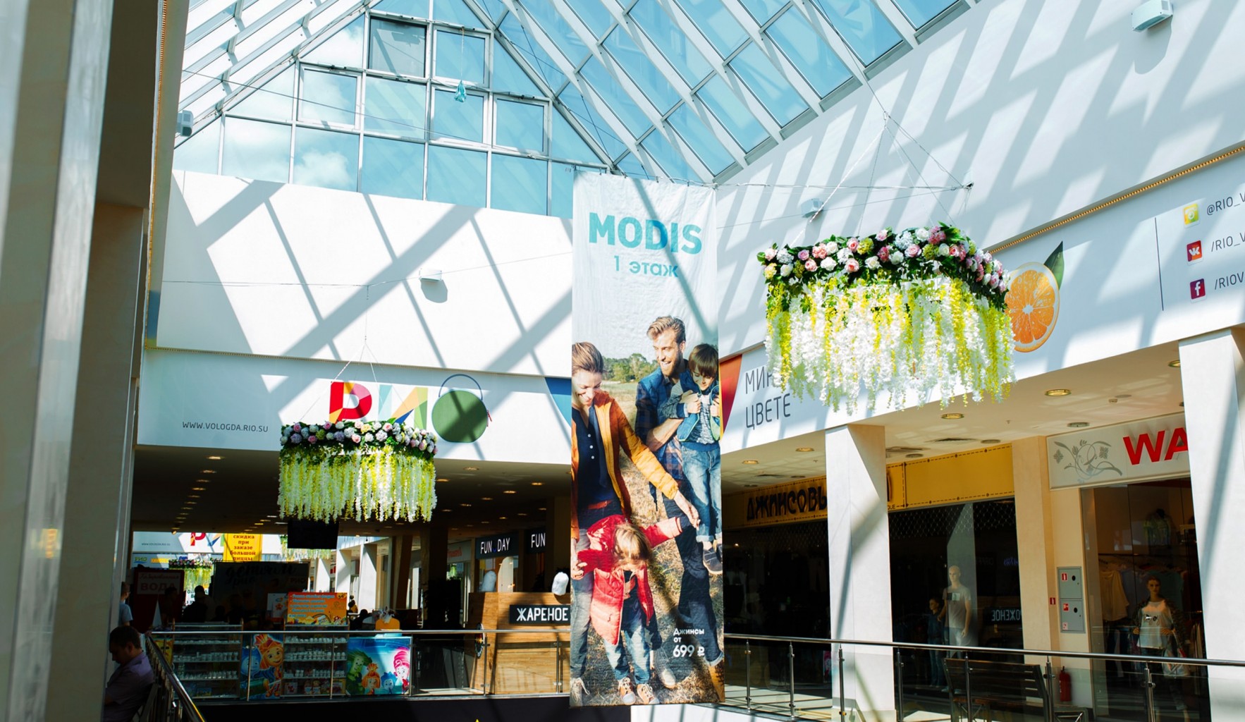 ТРЦ «РИО» собрал под своей крышей порядка 150 арендаторов. Среди якорных арендаторов - Ашан Сити, магазины бытовой техники - Эльдорадо, магазин детских товаров - Kораблик, известные международные и российские бренды - O'stin, New Yorker, Gloria Jeans, Funday, Modis, кафе и рестораны, а также многозальный кинотеатр Синема Стар.